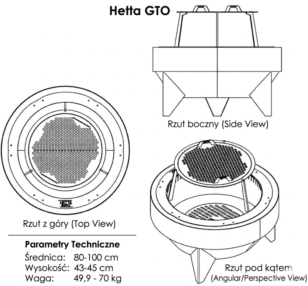 Model Hetta GTO 100 cm to propozycja dla osób posiadających większą przestrzeń wypoczynkową. Jego wymiary zostały dobrane tak, aby palenisko stanowiło solidną bazę dla spotkań w grupie kilku-kilkunastu osób. Solidna waga urządzenia, wynosząca około 70 kg, zapewnia, że palenisko jest niewrażliwe na silne podmuchy wiatru i przypadkowe uderzenia.