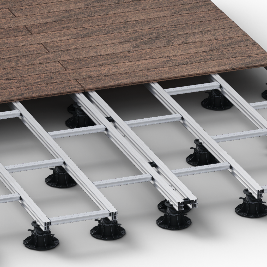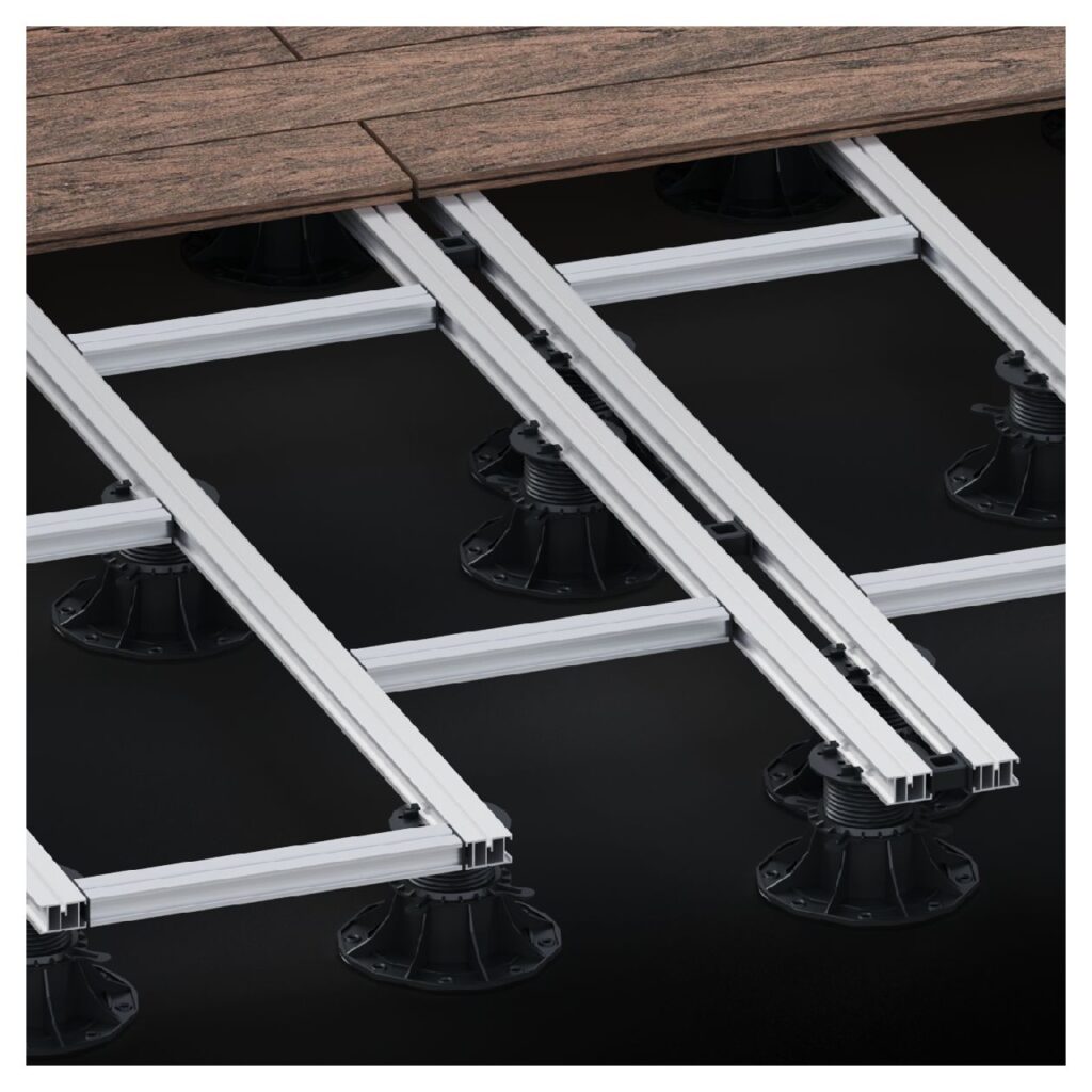 Zastosowanie systemu klipsów montażowych pozwala na szybkie i estetyczne ułożenie desek bez widocznych elementów łączeniowych. To rozwiązanie poprawia zarówno wygląd powierzchni, jak i komfort użytkowania.